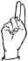 На ћирилици написано ЈЕЛИСАВ РАДОЈКОВИЋ састоји се из 17 слова [?]. Исписано ћириличном једноручном азбуком за глувонеме: